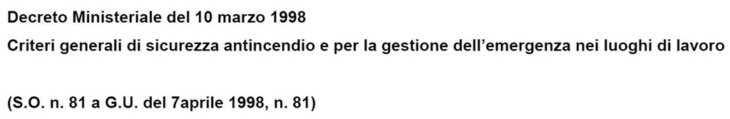 dipss002Il Dipartimento Salute e Sicurezza ha inserito in archivio il Decreto Ministeriale del 10 marzo 1998 sui criteri generali di sicurezza antincendio e per la gestione dell’emergenza nei luoghi di lavoro. Lo trovate facendo click qui.