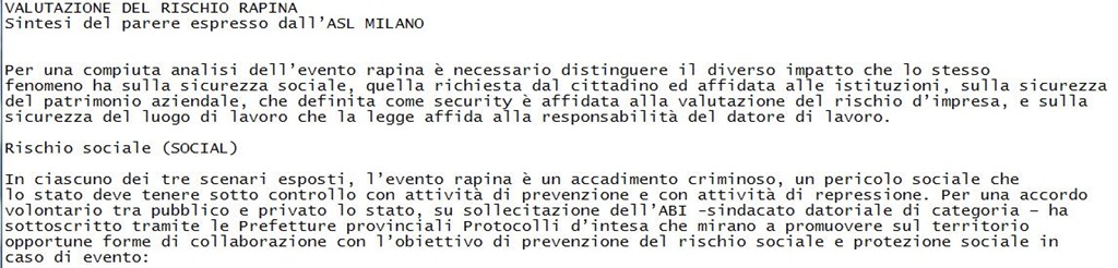 “Valutazione del rischio rapina – parere ASL Milano”: click qui. Click qui, inoltre, per la tabella riassuntiva delle rapine 2001-2009.
